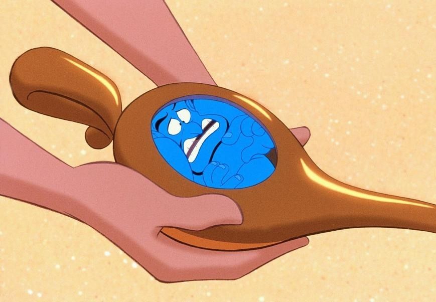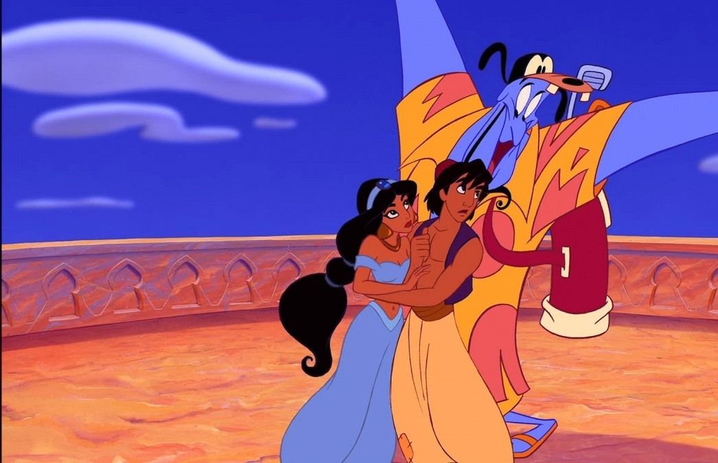 Описание: Аладдин живёт в восточном городе Агроба. Он бродяжничает и занимается воровством. Парень крадёт еду с рыночных прилавков, чтобы прокормить себя и свою ручную обезьянку по имени Абу. Однажды он набредает на пещеру, где находит ковёр-самолёт и лампу с Джинном, который исполнит 3 любых желания.